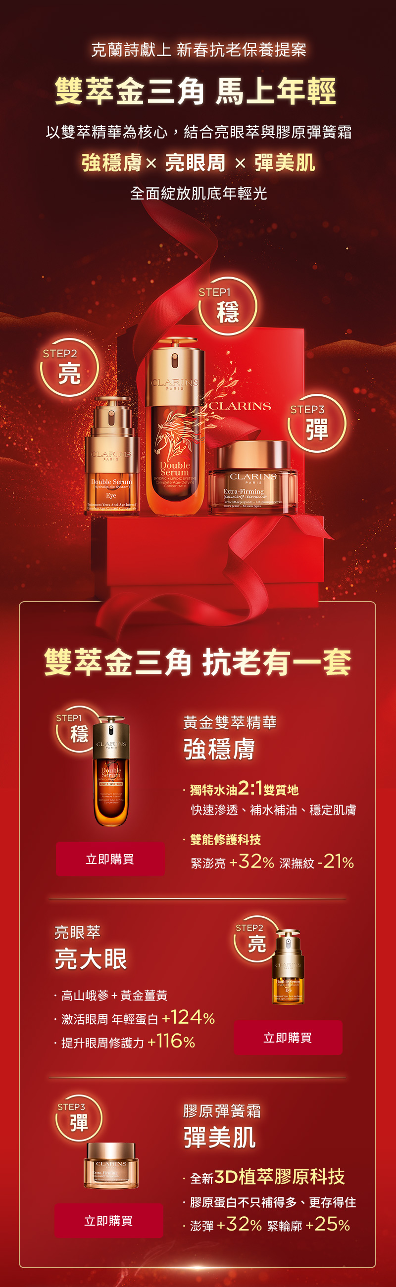 / 黃金亮眼萃 0.9ML / 黃金雙萃精華(經典版或清爽版) 0.9ML / 彈簧霜2ML