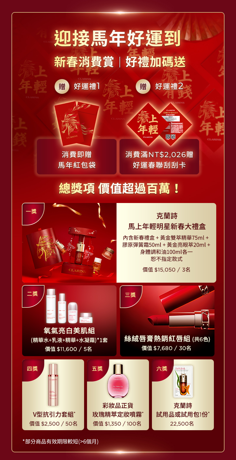 *六個月內已領取過克蘭詩活動試用兌換三次以上,此活動將無法領取,敬請見諒過往兌換記錄以克蘭詩櫃台資料為準