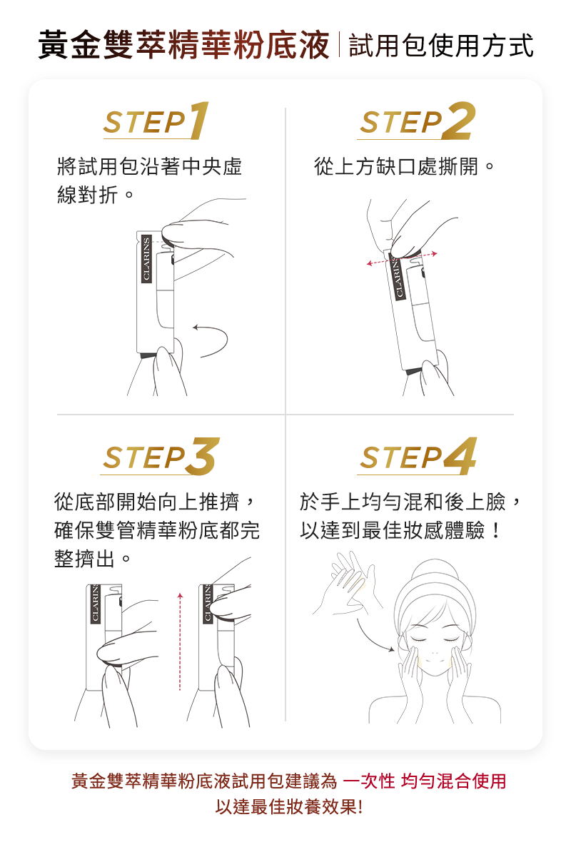 黃金雙萃精華粉底液 0.9ML /黃金雙萃精華(經典版或清爽版) 0.9ML / 氧氣亮白光感精華 2ML / 輕呼吸光感UV隔離露SPF50 PA++++【粉膚】3ML